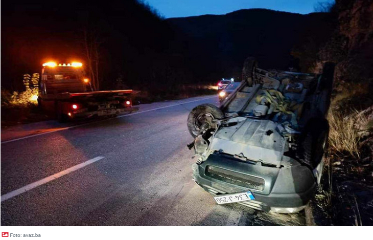 U ovoj nezgodi automobil Lend Rover završio je na krovu, nakon što je vozač izgubio kontrolu nad njim, a prema prvim informacijama uzrok je nepravilno preticanje.