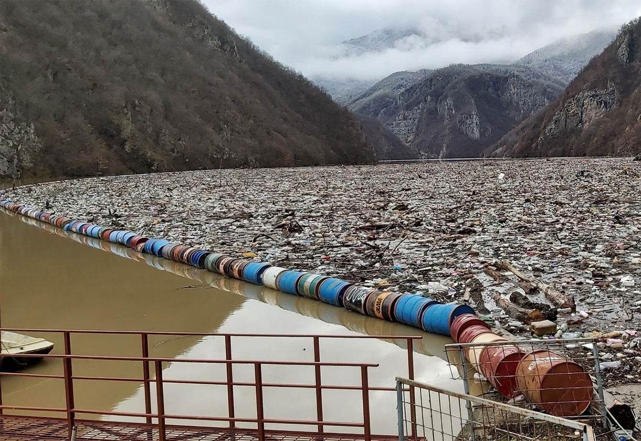 VIŠEGRAD – Ogromna plutajuća deponija ponovo je ovih dana zastrašujući prizor ekološke katastrofe s Drinskog jezera, koje je prekrilo oko pet hiljada kubnih metara različite vrsta otpada.