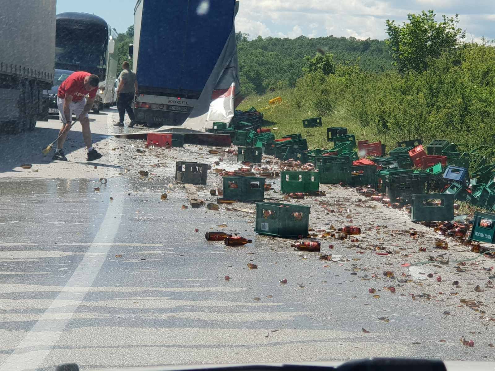 Kako piše Crna hornika, saobraćaj je bio usporen na ovoj dionici puta jer su iz kamiona ispale – gajbe sa pivom.
